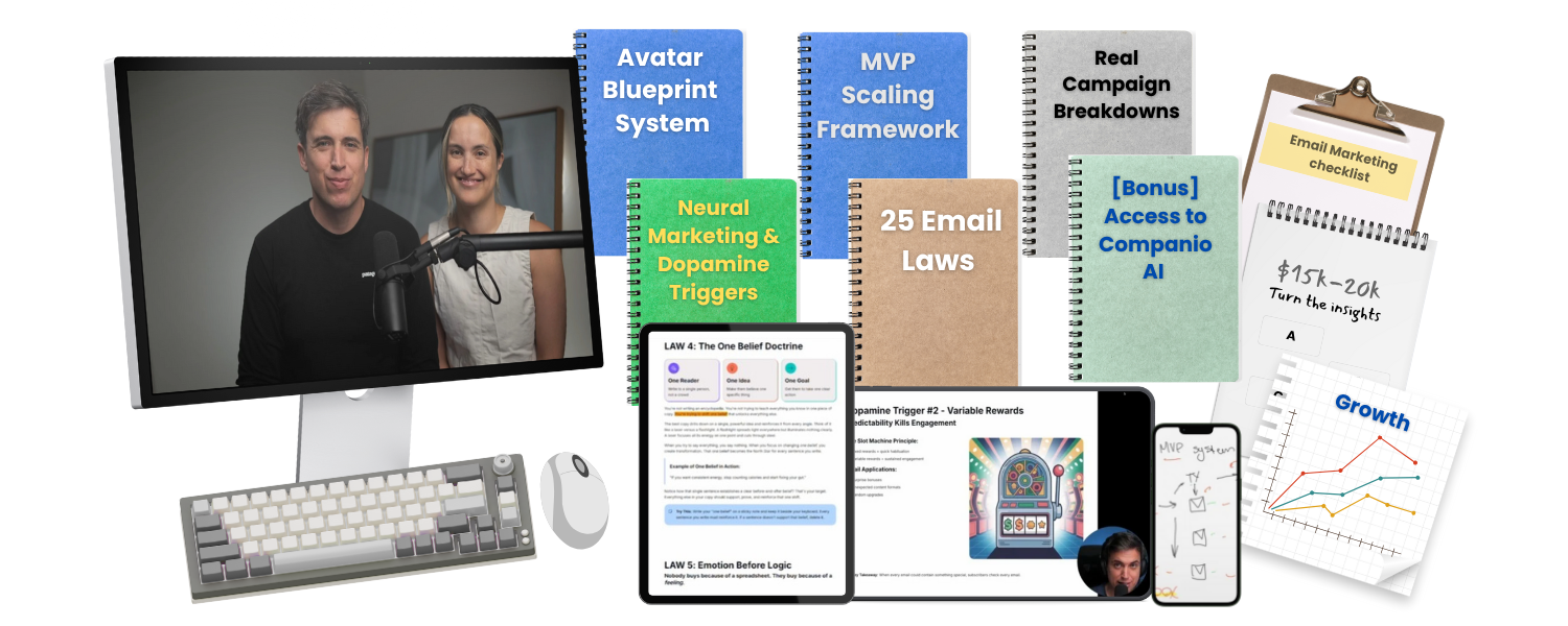 The step-by-step system on our 8-figure brand - 25 email laws, neural triggers, AI system, and our exact email methods...